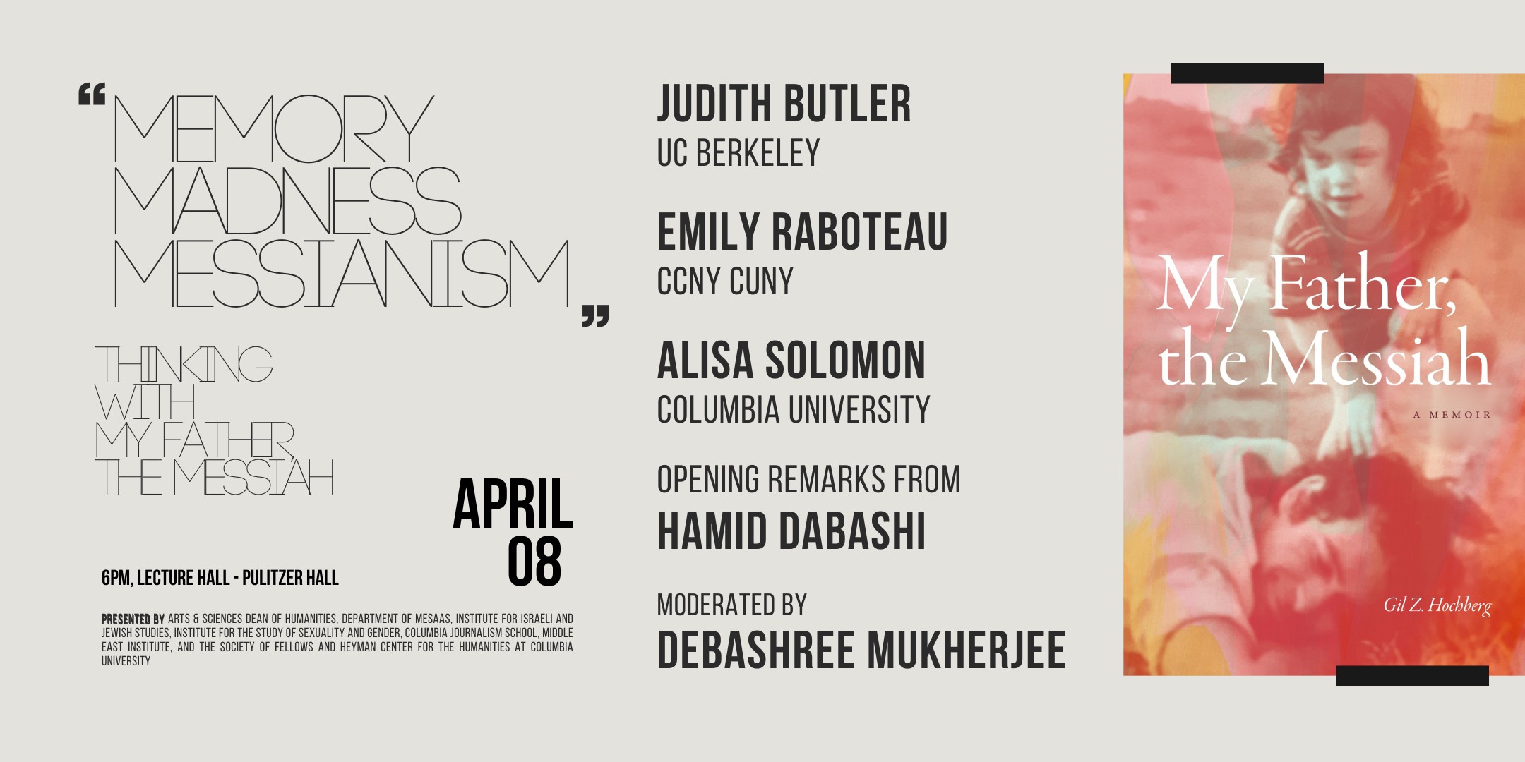 Presented by the Arts & Sciences Dean of Humanities, the Department of MESAAS, the Institute for Israeli and Jewish Studies, the Institute for the Study of Sexuality and Gender, Columbia Journalism School, the Middle East Institute, and the Society of Fellows and Heyman Center for the Humanities at Columbia University.